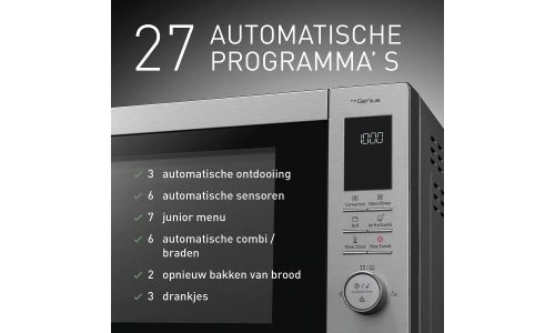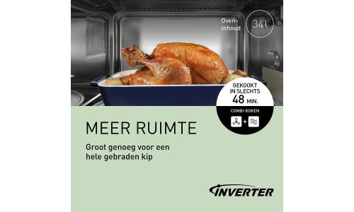 Met één handige keukenhulp warm je gezonde maaltijden op, bak je knapperige pizza's, maak je heerlijke hapjes in de airfryer en nog veel meer, wanneer je maar wilt. Geniet van gerechten op gezinsformaat waar iedereen van houdt - zonder rommel op het aanrecht. Inverter-technologie en de Genius Sensor voor een perfecte verwarming voor de heerlijke resultaten die je wilt. Je kunt deze energiebesparende combimagnetron zelfs gebruiken om je gewone oven te vervangen.