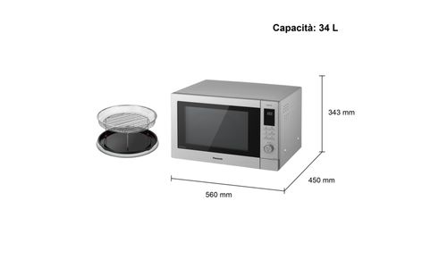 Bereid maaltijden waar het hele gezin van zal smullen. De NN-CD88 Inverter-combimagnetron is compact van formaat en heeft een enorme capaciteit van 34 liter. Met het meegeleverde extra grote draaiplateau van 360 mm past zelfs groter kookgerei moeiteloos. Dit betekent dat de combimagnetron ook als hoofdoven gebruikt kan worden - de convectiefunctie heeft een bereik van 40°C, 100 tot 220°C voor bakken en braden.