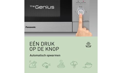 Doe gewoon je eten in de NN-CD88 en druk op start! Je hoeft geen tijd of vermogen in te stellen, want de magnetron neemt het giswerk uit de opwarmtijd. Hoe? Onze Genius Sensor controleert het stoomniveau in de magnetron en past de bereidingswijze hierop aan voor perfecte resultaten, elke keer weer.